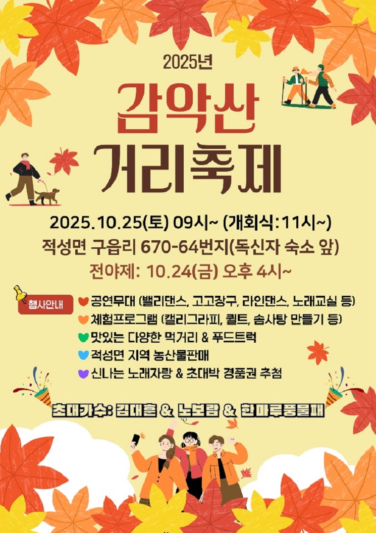 [파주시대 김영중 기자]= 적성면의 대표축제인 ‘감악산 거리축제'가 주민자치회 주관으로 오는 25일, ’를 개최된다.