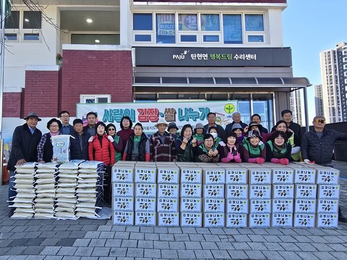 [파주시대 이종석기자]= 탄현면 새마을남녀지도자회(회장 윤광용, 임옥연)와 이장협의회(회장 유재근)는 지난 13~14일, 탄현면 종합복지회관에서 ‘사랑의 김장·쌀 나누기’ 행사를 개최했다.