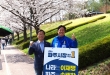 지난 6ì¼ ìœ¤í›„ë• êµíšŒì˜ì›ì´ ìš´ì •í˜¸ìˆ˜ê³µì›ì—서 ì„ ê±°ìš´ë™ ì¤‘ì¸ ì†ë°°ì°¬ 예비후보를 찾아와 ê²©ë ¤í•˜ëŠ” 모습. 사진/ì†ë°°ì°¬ 예비후보 사무실- 윤후ë•Â·ë°•ì • ...