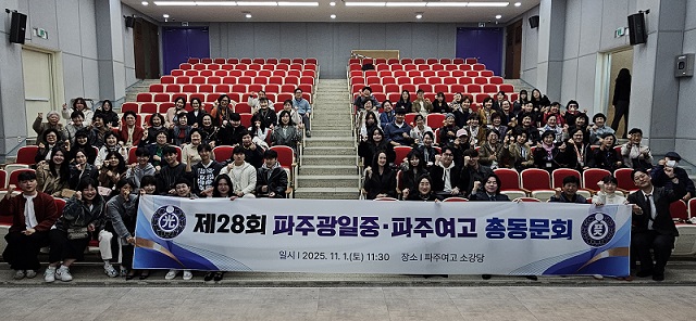 파주 광일중·파주여자고등학교 총동문회(회장 황정희, 15회)는 지난 11월 1일 파주여고 소강당에서 “다시, 우리를 이어주는 시간”의 슬로건으로 ‘제28회 광일중·파주여고’ 총동문회를 개최했다.