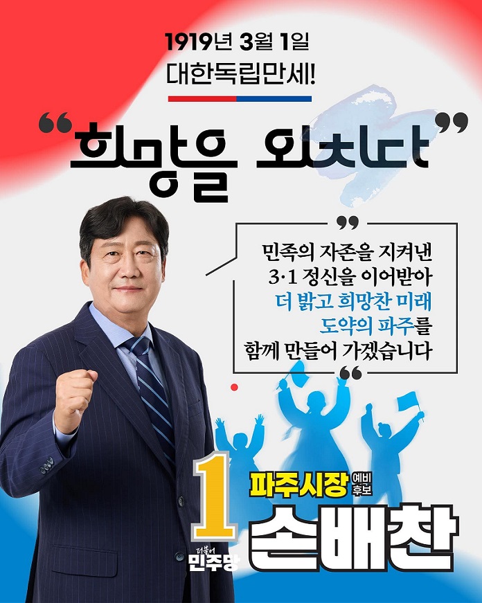 손 예비후보는 “공정은 선언으로 완성되지 않는다. 시민의 삶 속에서 체감될 때 비로소 의미가 있다”며 “반칙과 편법이 통하지 않는 도시, 상식이 곧 경쟁력이 되는 파주를 만들기 위해 모든 역량을 쏟겠다”고 밝혔다.