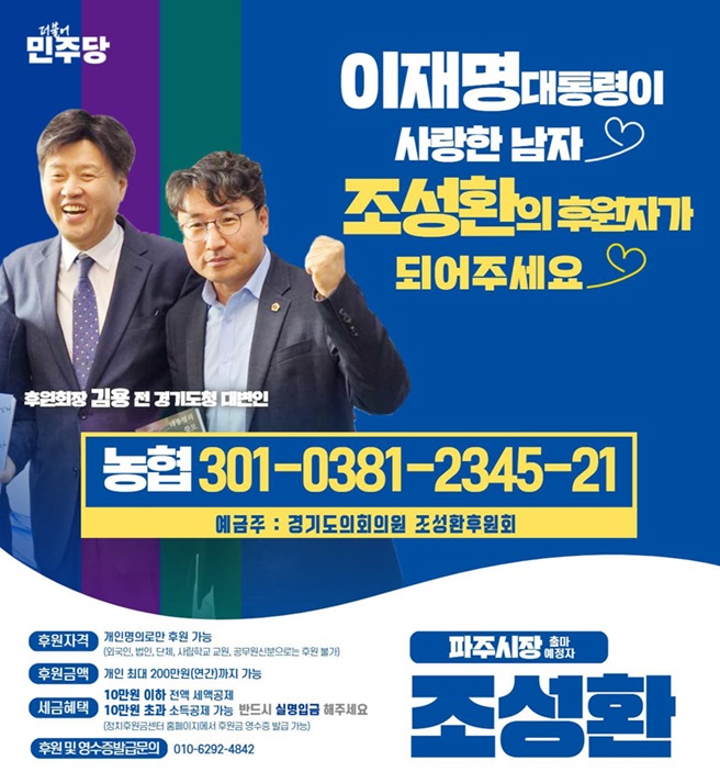 조성환 파주시장 출마예정자는 앞으로 출판기념회 대신 △소액다수 후원 캠페인 △온라인 정책대화 △시민 참여형 공약 제안 플랫폼 등을 통해 선거를 치를 계획이다.