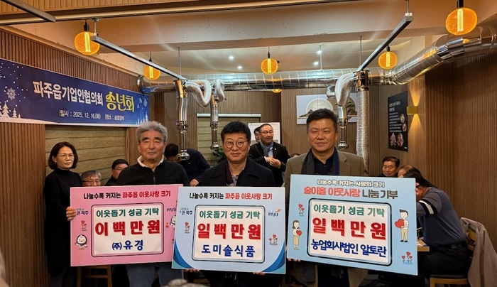 김동철 파주읍 기업인협의회 회장은 “기업이 지역사회로부터 받은 관심과 성원을 취약계층에 나눔으로 환원하고, 이를 통해 우리 지역이 서로 돕고 배려하는 온정 넘치는 공동체로 거듭나길 기대한다”라며 “앞으로도 기업과 지역이 함께 성장할 수 있는 다양한 사회공헌 활동을 이어가겠다”라고 말했다.