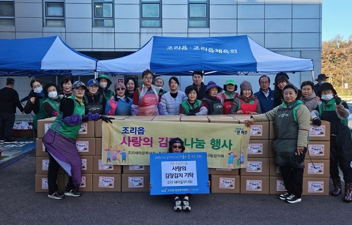 [파주시대 이종석기자]= 조리읍은 지난 14일, 관내 사회단체들이 모여 지역 내 저소득가구 및 어르신 등 소외된 이웃들에게 전달하기 위한 ‘사랑의 김장 나눔 행사’를 진행했다.