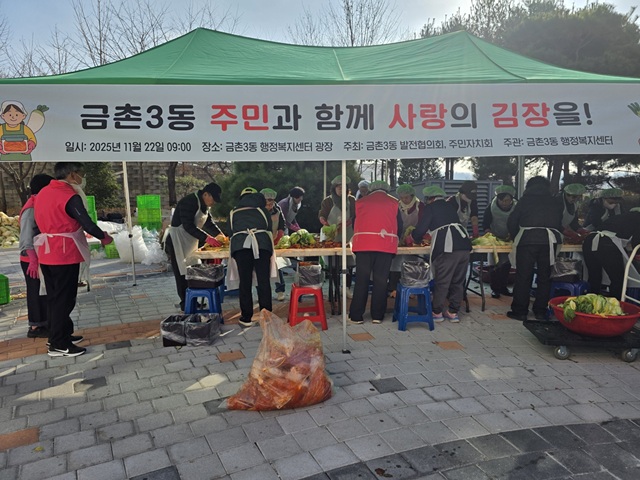 [파주시대 김영중기자]= 금촌3동 주민자치회는 지난 20일부터 22일까지 「주민과 함께하는 겨울맞이 김장김치 담그기」 행사를 금촌3동 행정복지센터 광장에서 성황리에 개최했다.