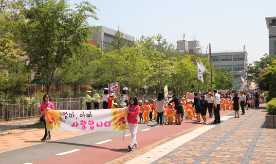 이날 캠페인은 안전교육의 일환으로 거리를 걸으며 교통안전과 교사·부모를 사랑하는 마음을 가지는 각종 문구의 표지판과 현수막을 통해 어린이와 어른들에게 경각심을 높이고 이를 예방하는 체험 교육을 위해 실시됐다.
