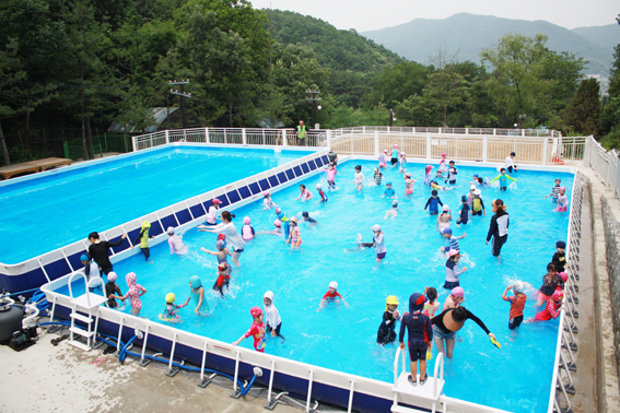 도심에서 벗어나 맑은 공기 산속에서 즐기는 파주 동화힐링캠프만의 야외 수영장이 개장했다.
