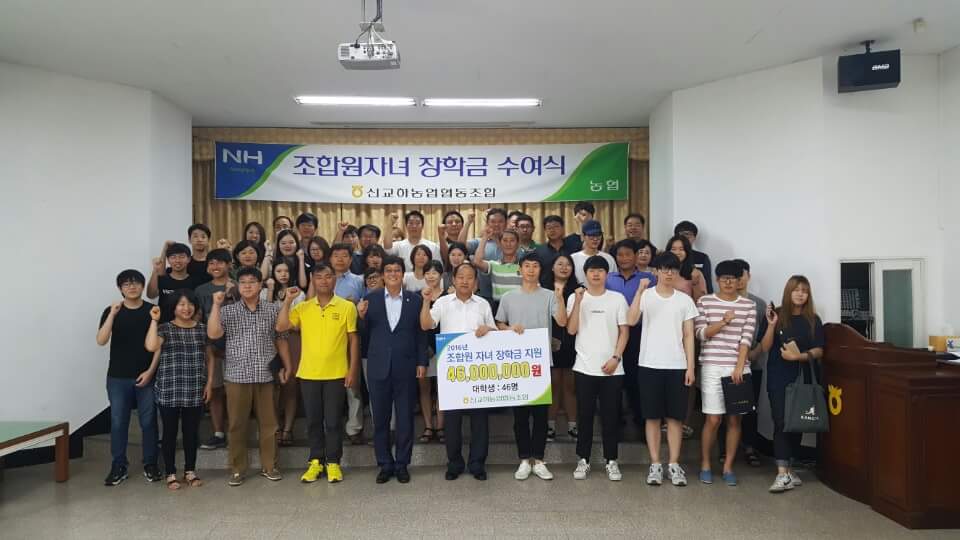 신교하농협(조합장 황규영)이 국내대학에 입학하는 조합원 자녀들에게 장학금을 지급하며 지역 인재육성 발굴에 박차를 가하고 있다.