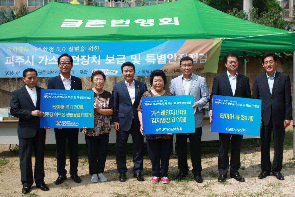 한국가스안전공사, 서울도시가스, LP가스 파주판매협회는 어르신 댁에 전자식 가스안전장치인 타이머 콕 200여개와 경로당에는 가스레인지 1대 등 무료 보급하고 노인 가구를 방문해 직접 시설개선 시범을 보이며 가스 안전관리의 중요성에 대해 강조했다.