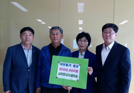또한 교하동 새마을협의회(회장 권병일)와 새마을부녀회(회장 윤용칠)도 성금 50만 원을 기탁했다. 이들은 지난 15~16일 파주개성인삼축제 부녀회 음식부스 운영을 통한 수익금중 일부를 회원들의 이웃사랑실천을 위한 마음이 모여 이뤄졌다.