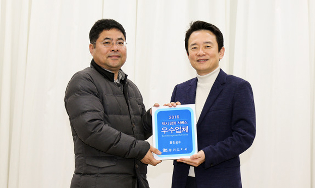 지난 7일 경기도는 도내 193개 일반택시업체를 대상으로 한 ‘2016년 택시경영 및 서비스 평가’에서 최우수로 선정된 무진택시와 우수업체 흥진운수에 우수업체 인증패를 수여했다.