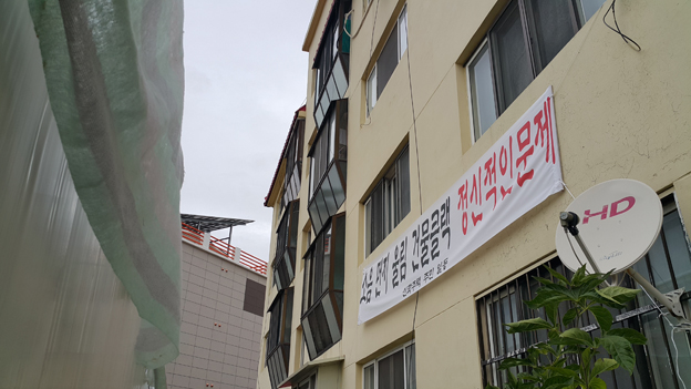 노후된 철근콘크리트 건물이 주변 개발로 인해 피해를 보고 있다며 주민들이 반발하고 나섰다.