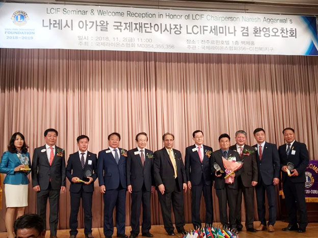 지난 2일 전주시 호텔 르윈 피카소홀에서 가진 국제라이온스협회 LCIF 국제재단이사장(나레시아가왈) 공식방한 및 세미나에서 파주율곡라이온스클럽이 국제재단이사장으로부터 MJF 가입 기념패를 받는 뜻깊은 시간을 가졌다.