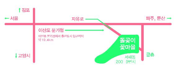 - 200 노선 : 합정역⇒ 일산신도시⇒덕이동⇒교하신도시⇒돌곶이꽃마을 하차⇒ 약300m 걷기(약 4분 소요)