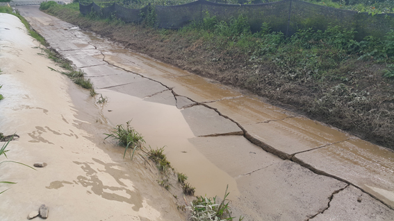 더욱이 마을도로는 파주시민의 세금으로 공사를 마무리한 하수관거 작업구간으로 한달전 아스콘 포장을 끝낸 도로이다. 폭염에 아스콘이 뜨겁게 달아올라 중량이 무거운 차량이 지나가면서 아스팔트 도로가 힘없이 밀려나 배수로까지 덮힌 상황이다.