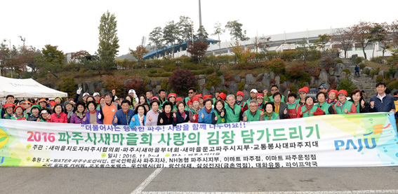 파주시 새마을부녀회(회장 유연희)는 지난 4일 파주스타디움 주차장에서 사랑과 정성이 담긴 김장김치를 담갔다.