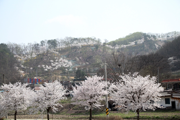 ▲산등성이로 길게 뻗은 만개한 동화힐링캠프 수목원 벚꽃...작년 촬영한 사진