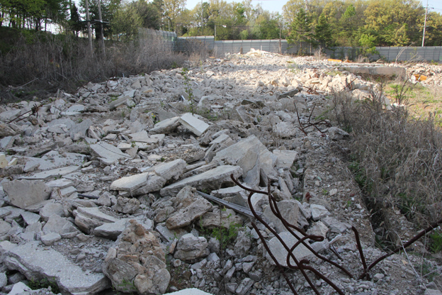 철거된지 수년 지나도 유리섬유, 콘크리트류 그대로 방치