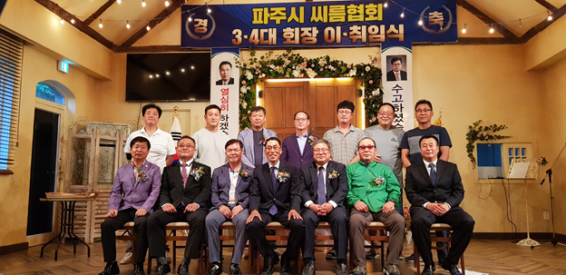 이날 유병헌 이임회장을 비롯 경기도 씨름협회 김준태 전무이사, 신동수 심판위원장, 박승욱 경기위원장, 전 파주시생활체육회 3, 4대 류한철 회장, 권혁주 민주평화통일자문회의 전 파주시협의회장 및 회원, 관계자 등 50여명이 참석한 가운데 제3대 유영헌 이임회장, 제4대 원병희 신임회장의 조촐한 이·취임식 행사를 가졌다.